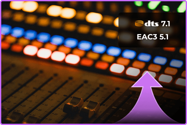 Need surround upmix (e.g., EAC3 5.1 / DTS 7.1) for cinematic sound.